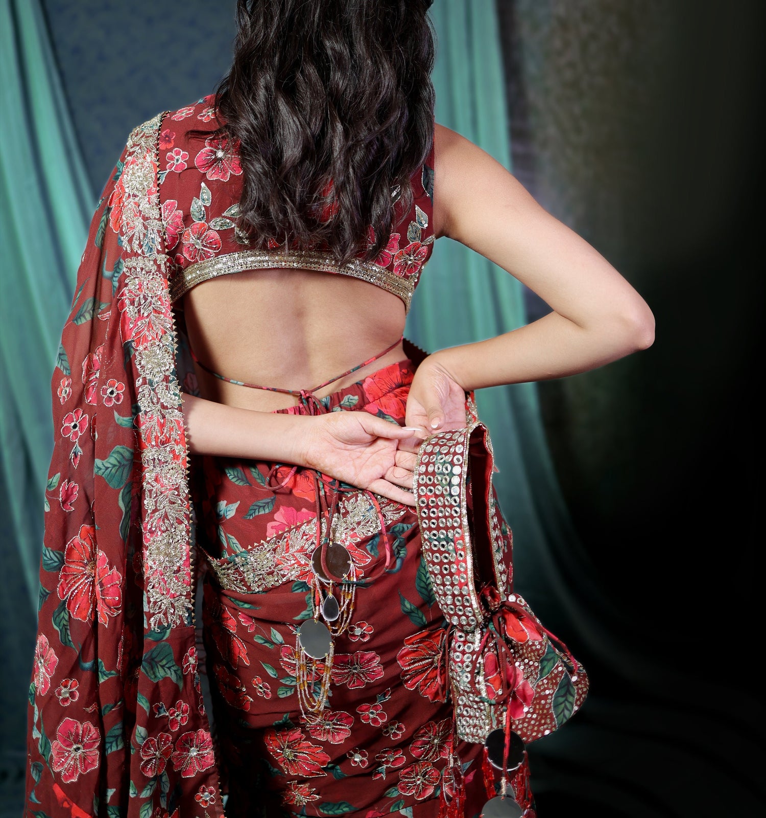 Exquisite handmade potli bags adorned with intricate hand embroidery. Each piece is carefully crafted by skilled artisans, making it a unique addition to your festive wardrobe.
